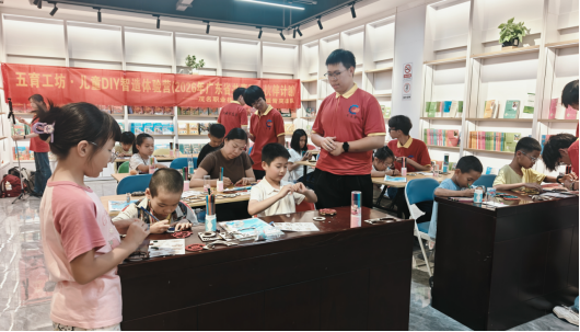 4月25日,茂名职业技术学院机电信息系党总支副书记梁燕、辅导员颜靖带领广东青年大学生“百千万工程”突击队——智械暖青突击队,走进茂名新华书店河东门店,成功举办“五育工坊·儿童DIY智造体验营”活动。本次活动共吸引16名小朋友报名参加,将科技实践、中华传统文化与“五育并举”理念深度融合,为少年儿童带来了一场别开生面的科创启蒙课。