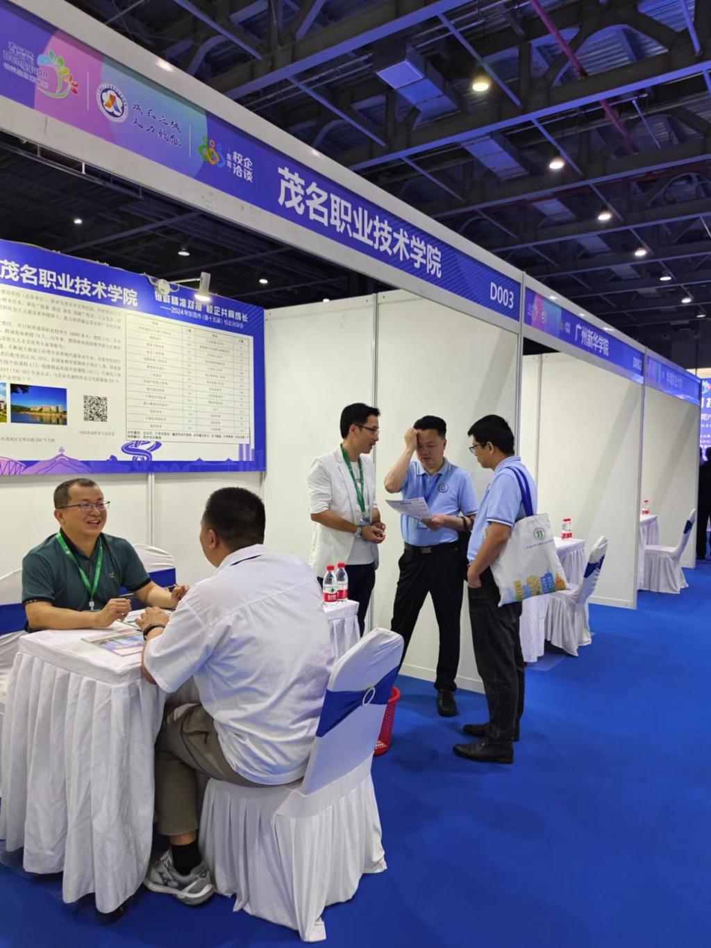 4月23日,东莞市(第十五届)校企现场洽谈会在广东现代国际展览中心1号馆隆重举行,各高校展位前人头涌涌,驻足洽谈的企业代表络绎不绝。即便到了下午四、五点,大多数展位依然热闹非凡,企业求才若渴之心炽热。23日全天,来我校展位联系咨询的企业近百家。我校参会代表彭树福、陈志聪、王天放与东莞可锐电子科技有限公司、东莞是阿兴食品科技有限公司、广东湘涛高新材料科技有限公司、东莞市菜莞家净菜有限公司、广东鑫发精密金属科技有限公司、华钢智能科技(广东)有限公司、广东珠江啤酒股份有限公司等18家合作意愿强烈的企业进行了坦诚交流,达成了下半年参加2025届毕业生校园招聘、逐步推进订单培养合作的共识,可望为我校机电、化工、计算机、建筑、经管等30多个相关专业明年的毕业生提供350个以上优质的实习(就业)岗位。