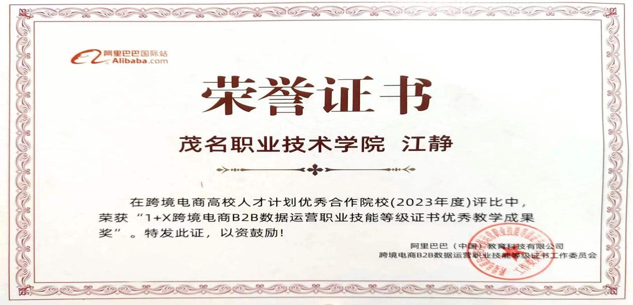 我院在2023年度“1+X”跨境电商B2B数据运营职业技能等级证书考证工作中表现突出,经济管理系刘峻兵、何靖雯、江静三位教师获得2023年度1+X跨境电商B2B数据运营职业技能等级证书优秀教学成果奖。