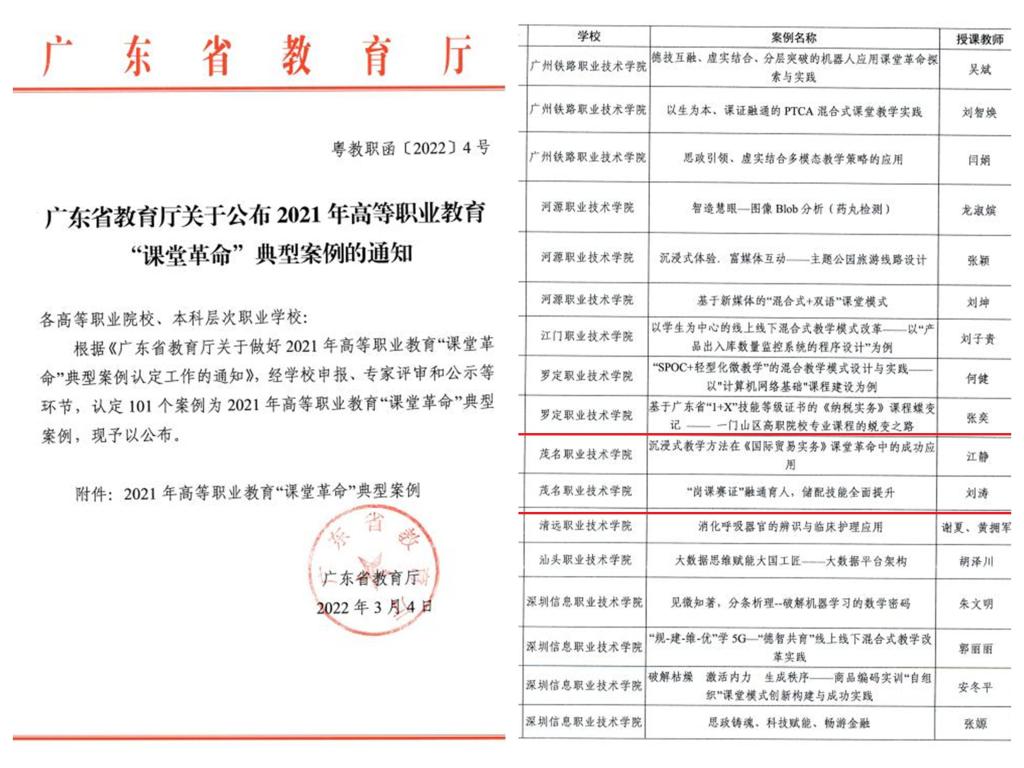 2个案例入选广东省高职教育“课堂革命”典型案例