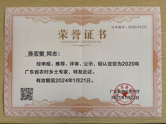 优秀毕业生陈宏敏被省厅认定为“广东省农村乡土专家”