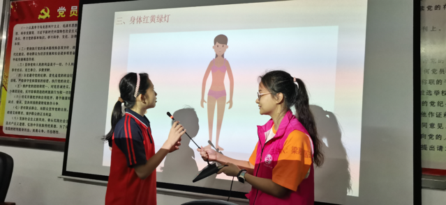 活动中,志愿者通过“身体对对碰”和“身体红绿灯”“有奖抢答”“快乐抽奖”等趣味小游戏,引导小朋友们通过贴“红圆圈”“绿圆圈”等方式了解了隐私部位,为小朋友们讲解“身体的秘密”,让小朋友们充分了解自己的身体结构;接着,通过播放卡通宣传短视频让小朋友们正确认识自己和异性的身体区别,建立了“隐私”的概念,比如哪里是隐私部位,不可以外露,别人不可以随便触摸,学会了如何保护自己和尊重别人的隐私部位等。