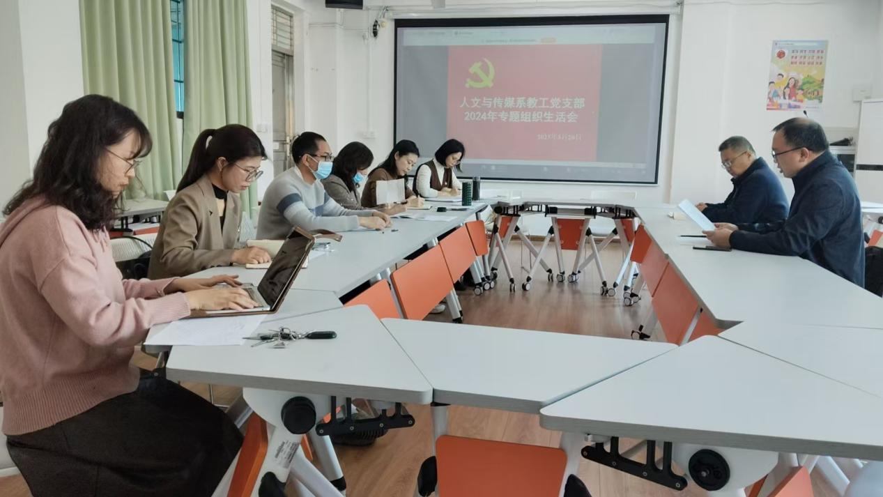 近日,人文与传媒系教工党支部在1栋406举行了专题组织生活会。本次会议由教工党支部书记梁章萍主持,人文系全体教工党员参加会议。
