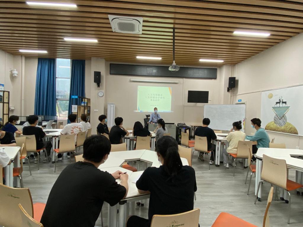 4月17日下午,人文与传媒系在社工实训室召开2021-2022第二学期入党积极分子推优会议,会议由学生党支部书记潘坤才老师主持,各班班长及团支书参加了会议。