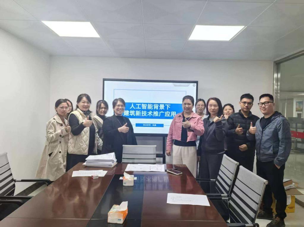 本次培训由陈娜、张淑红、吴桃春主讲,广东安邦建筑设计有限公司30余名技术人员参加。培训紧扣建筑行业发展趋势,聚焦AI生成设计、BIM 智能化建模、智慧工地数据管理等核心应用场景,结合典型工程案例,深入浅出地讲解了人工智能技术在建筑方案优化、施工进度管控、成本核算等环节的实操方法。培训过程中,校企双方还围绕技术痛点、人才需求等内容展开互动交流,现场气氛热烈。