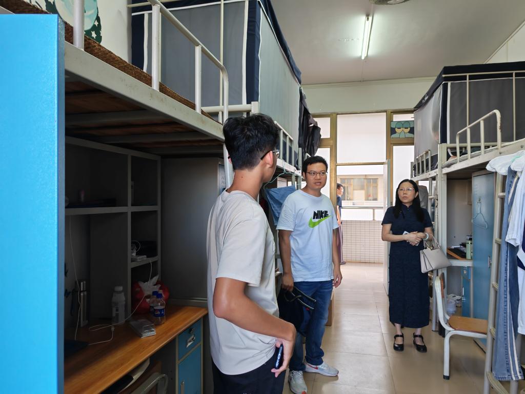 与此同时,土木工程系领导带领全体辅导员、班主任下沉一线,协同学生干部深入开展宿舍走访检查。检查人员逐间查看学生宿舍蚊帐悬挂情况,对未规范悬挂、蚊帐破损的情况现场提醒整改,确保蚊帐发挥防蚊阻隔作用;同时细致排查宿舍内是否存在积水隐患,重点检查阳台花盆接水盘、卫生间积水、废弃容器存水等问题,对发现的积水及时督促清理,并向学生讲解积水滋生蚊虫的危害,引导大家主动做好宿舍内防蚊措施。