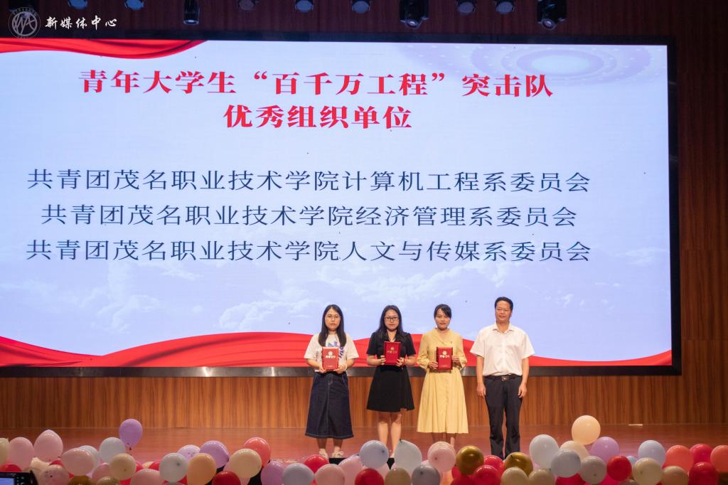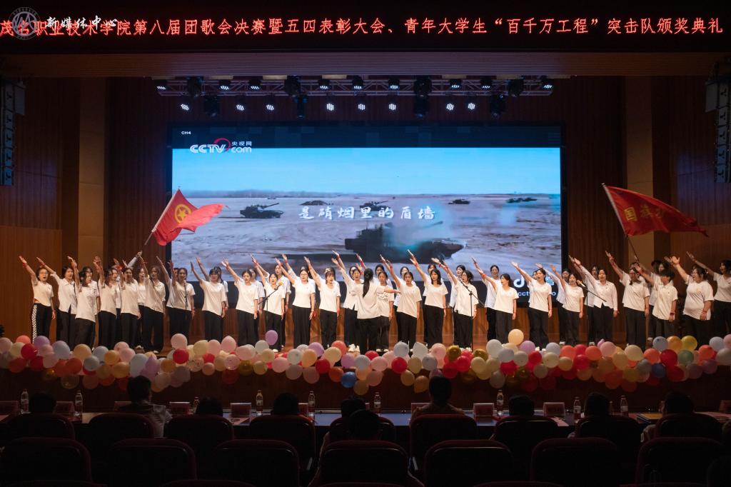 在纪念五四运动106周年之际,5月10日,茂名职业技术学院在南校区学术报告厅隆重举行第八届团歌会决赛暨五四表彰大会、青年大学生突击队颁奖晚会!学院党委专职副书记董荣权,各系负责人、学院相关职能部门代表,学院团委全体成员、各系团委书记、学生会秘书长等参加活动。