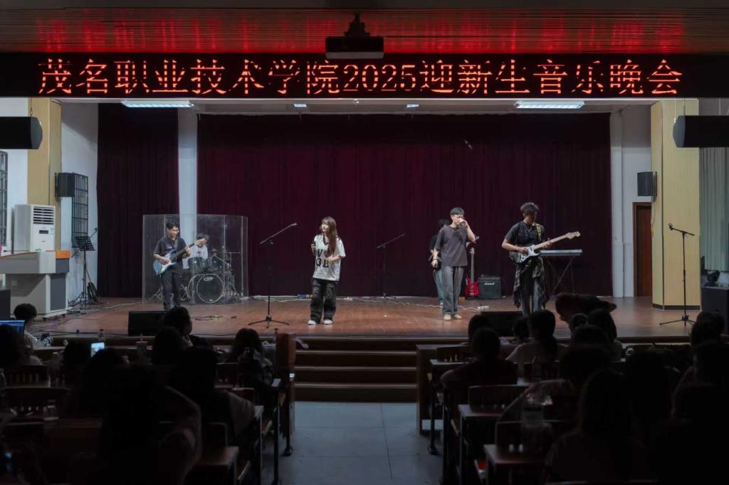 茂名职业技术学院2025迎新音乐晚会于近日在南北校区举行。学院艺术团指导老师曾海珠、团委干部周昇媚、艺术团声乐部指导老师陈亮,与千余名2025级新生参加晚会。