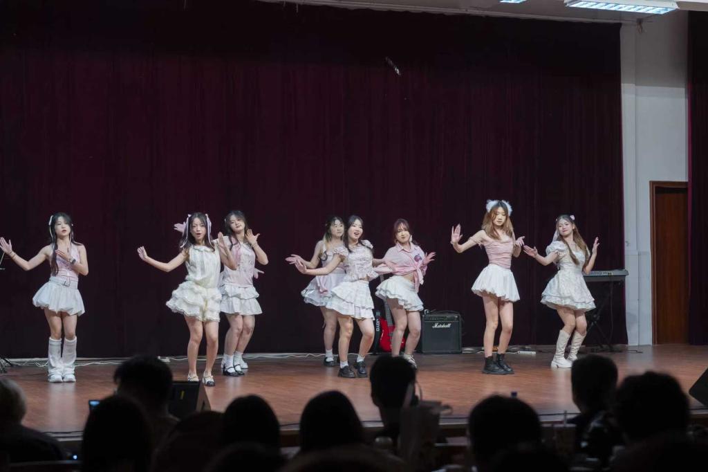 动感舞蹈《Meovv》《This is for》开启晚会,H.E乐队带来歌曲联唱,热血的旋律与激情的鼓点极具感染力,K05乐队的《逆行》《心要野》用摇滚的力量与师生同频共振。乐队的旋律、舞蹈编舞和默契的配合,都是学长学姐们为新生们精心筹办的。