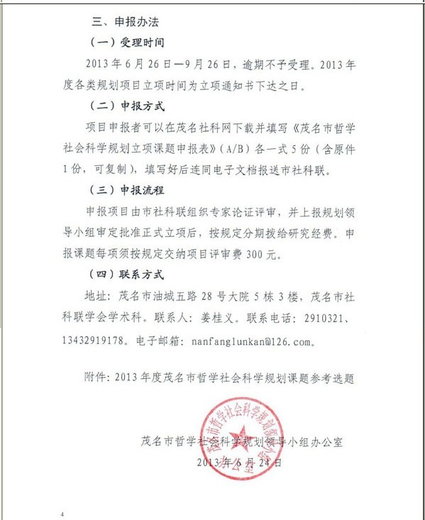 关于组织申报茂名市2013年度哲学社会科学规划立项课题的通知