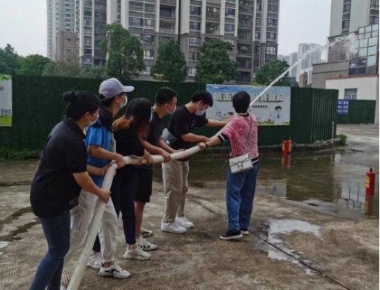 演练开始,教职工参与热情高涨,都纷纷动手体验使用二氧化碳灭火器和干粉灭火器来灭火。接着,教职工练习连接消防水带,并使用消防水枪来灭火,在实践中践行消防安全无小事的宗旨。